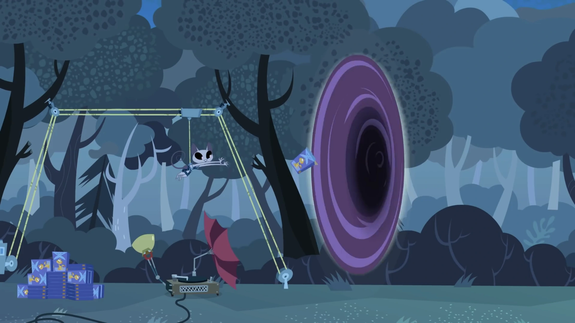 After destroying the interior of the rocking chair factory in "Keep On Rockin'" Kat attempts to send the whole building into the sun using powerful engines. It ends with a factory landing somewhere in the park.