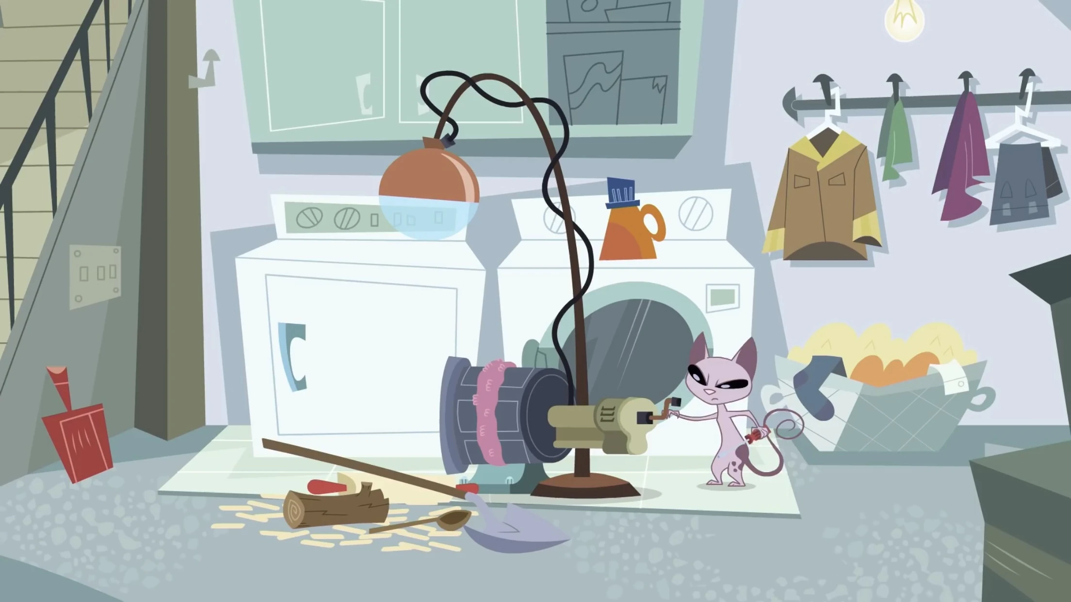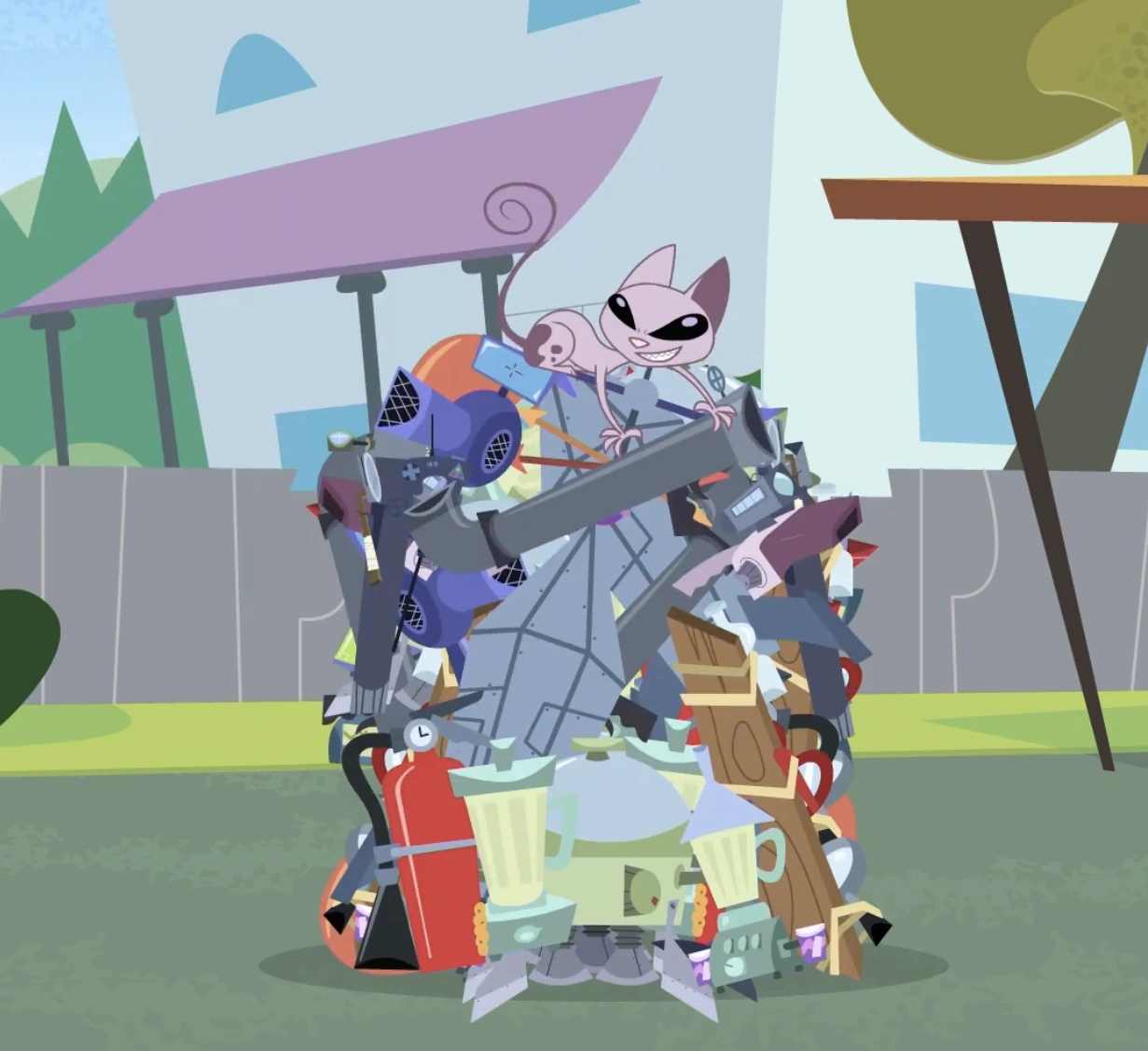 As seen in the episode "Nip/Duck", Kat built this to resharpen his claws after the Vet trimmed them down; this device is also made from everyday household items such as a blender, cheese grater and an orange juicer.