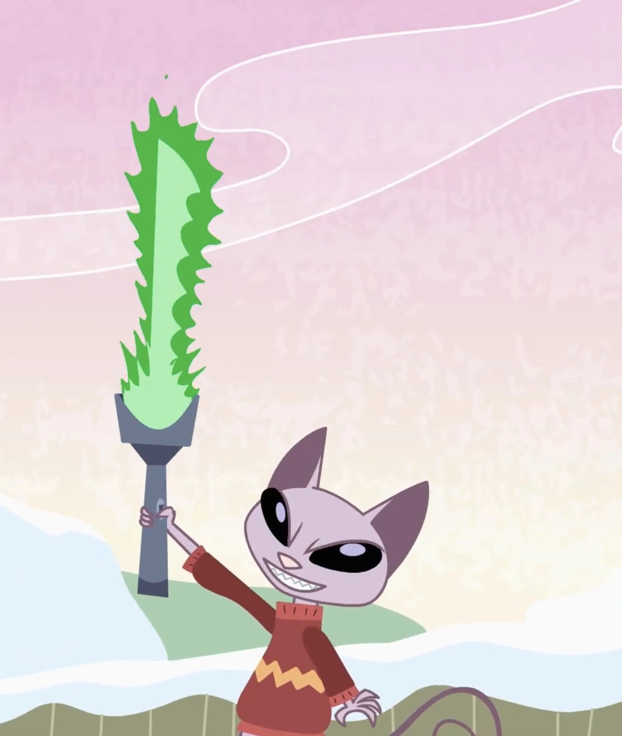In "Catboy Update" Kat modified leaf blower, making it powerful enough to send Coop flying in the air.