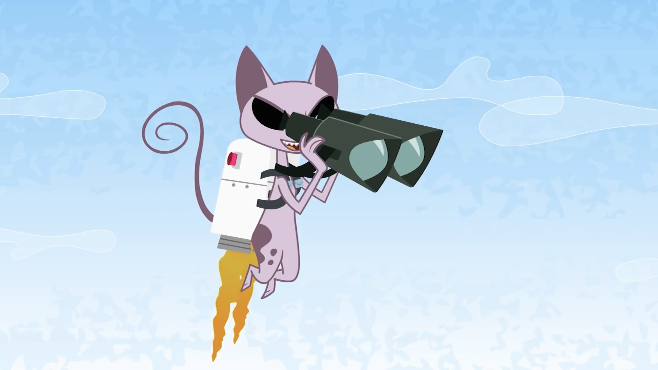 In It's a Rocket, Man, Kat made a telescope out of a glass cup, magnifying glass and Millie's glasses in order to see how the delivery pod with his weapons of doom were doing.