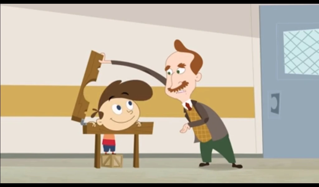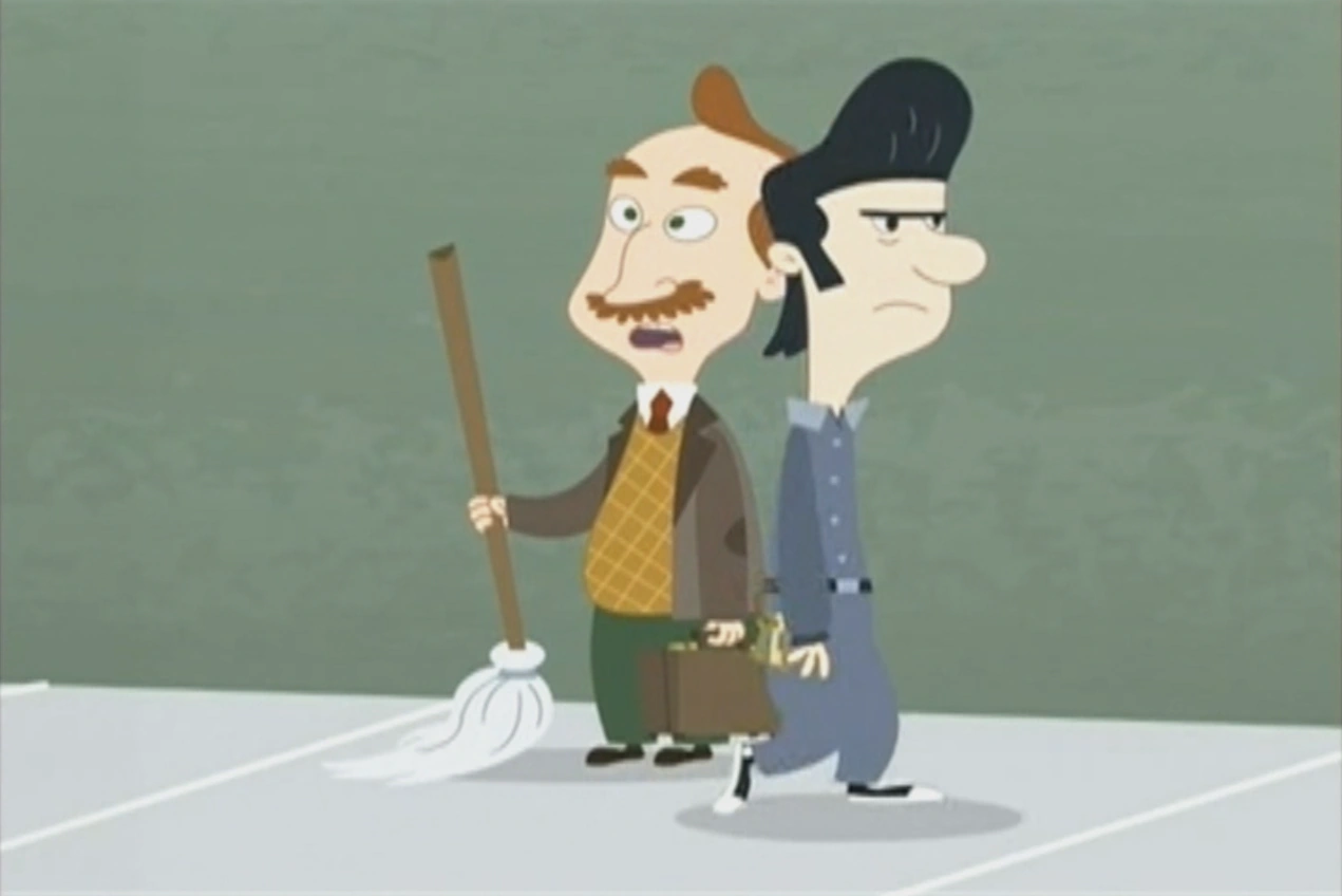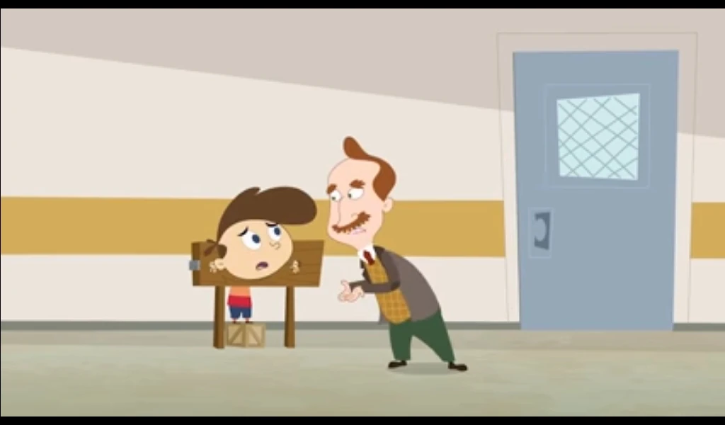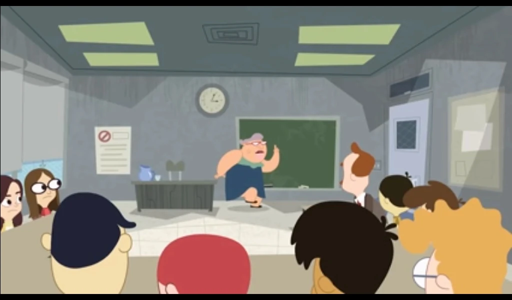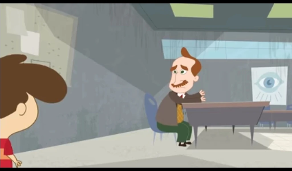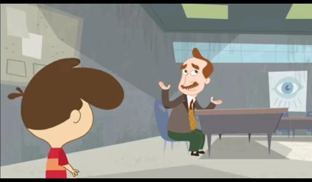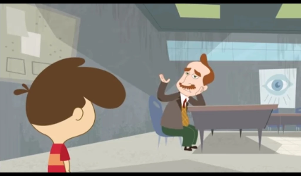 His first appearance was Rhymes with Coop , He was shocked to see the school is turned in a giant litterbox. The Janitor hands him his mop and walks past him saying he quit.